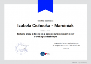 Absolwentka Uniwersytetu Warmińsko – Mazurskiego w Olsztynie – logopedia