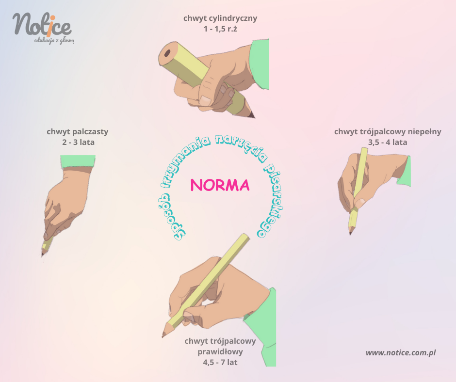 📌motoryka mała – prawidłowy chwyt, napięcie, praca nadgarstka i palców,
